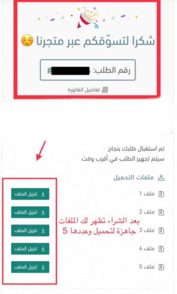 بعد الشراء مباشرة تظهر لك الملفات جاهزة للتحميل